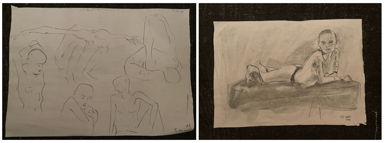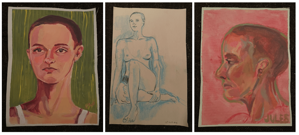 Two portrait paintings and one 20-minute sketch of me from Eliana and class attendants (Alexandra Clear)